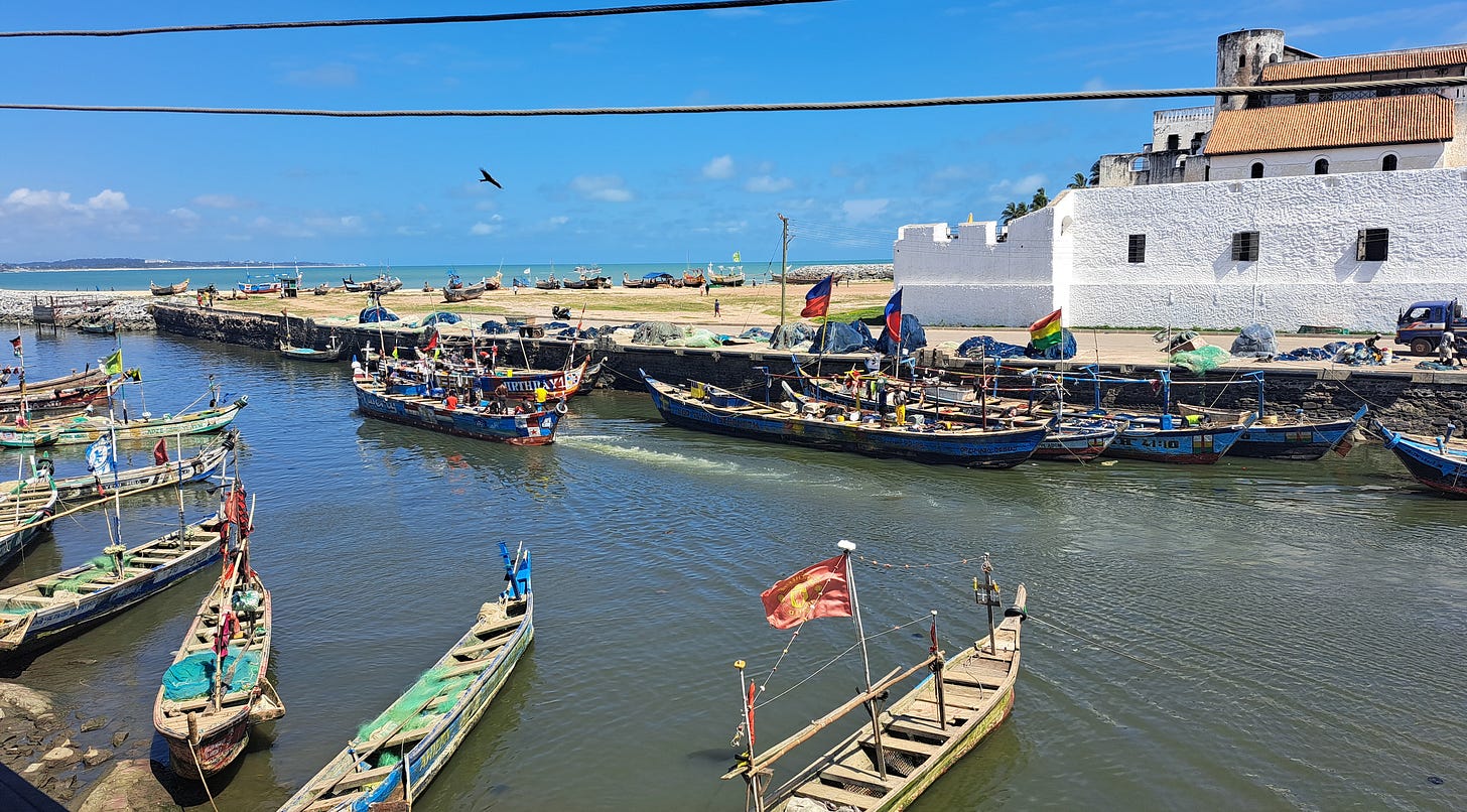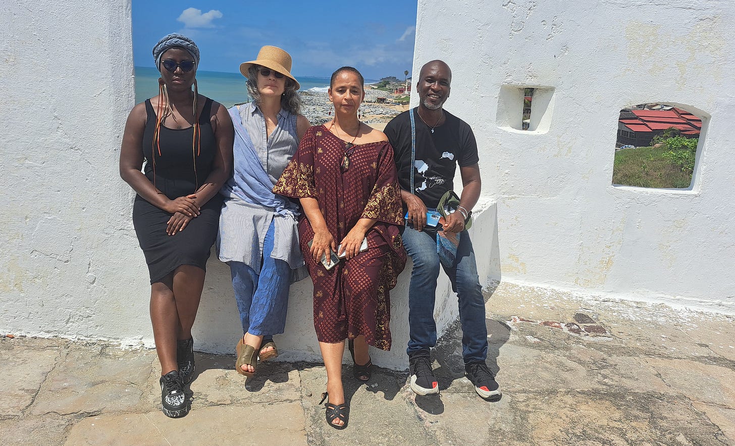 AS²: Beautiful. When you describe yourself as a church girl, it reminds me of the time I had the opportunity to visit the Elmina Castle with you and walk through the dungeons. The architecture of that place stays with you. Beneath the castle are the dungeons where people were held during the transatlantic slave trade. Nearby are burial grounds connected to that same history. Then, within the structure itself, there is the church. And above that, the residence of the official who oversaw the entire economic system of trading human beings. What struck me most was the vertical layering of it all. The roof of the dungeon is the floor of the church. The roof of the church is the floor of the governor’s quarters — the space where the person responsible for this system lived. Standing there, you can’t ignore how those layers physically embody a certain history: faith, power, commerce, and violence literally built on top of one another. And yet, when you speak about being formed within the church, you also carry a critical awareness of those contradictions.